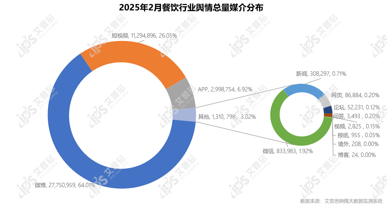 图3 2025年2月餐饮行业舆情总量媒介分布