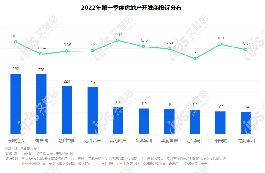 2022年第一季度房地产投诉量前五开发商质量投诉问题