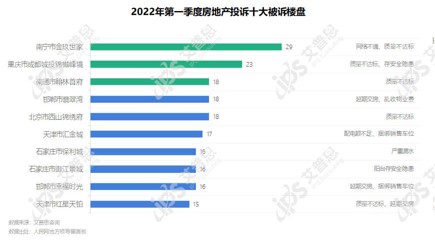 本期,艾普思咨询采集了人民网地方领导留言板2022年第一季度的房地产投诉数据作洞察分析,助力从业者及监管者洞悉行业痛点与诉求,把握未来发展方向。